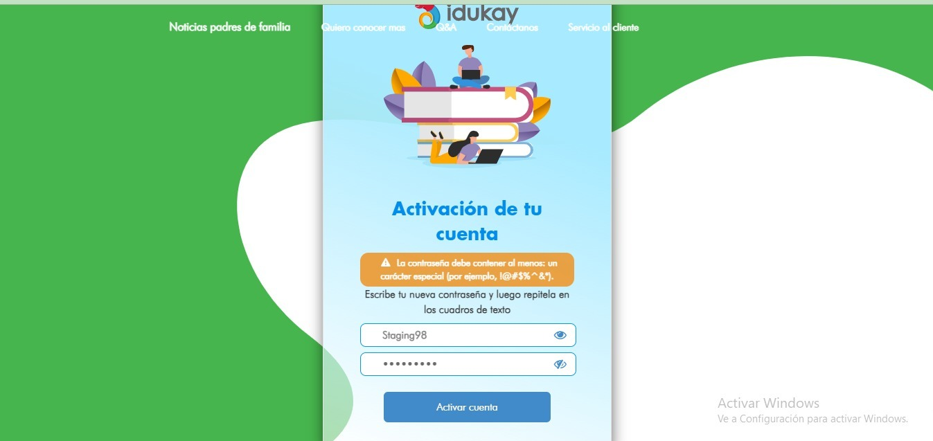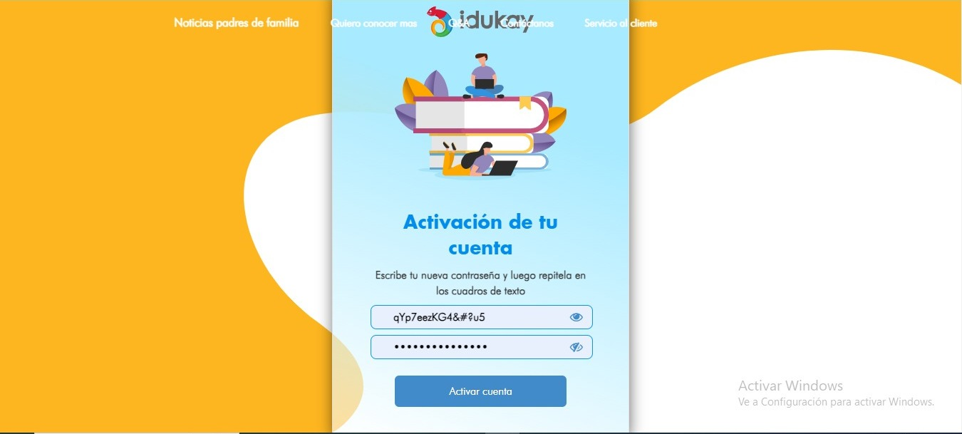 Una vez introducida la nueva contraseña, el usuario deberá hacer clic en "Activar cuenta" para completar el cambio.