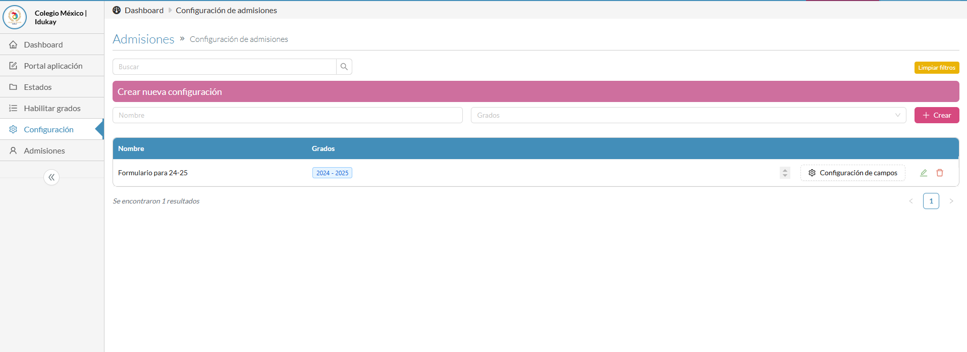 El objetivo de este procedimiento es que los administradores puedan gestionar de manera eficiente la configuración de los formularios de admisión en función de los grados escolares. Te detallamos el paso a paso para configurar esta funcionalidad.
