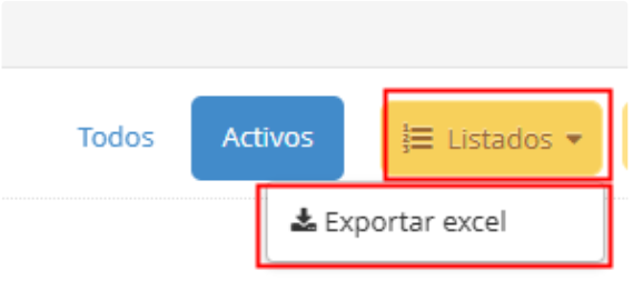 2. Una vez ahí, debemos de dirigir nuestro cursor al lado derecho, al botón amarillo llamado “Listados”, presionamos ahí, y nos aparecerá un recuadro blanco que dice “Exportar Excel”, le presionamos.