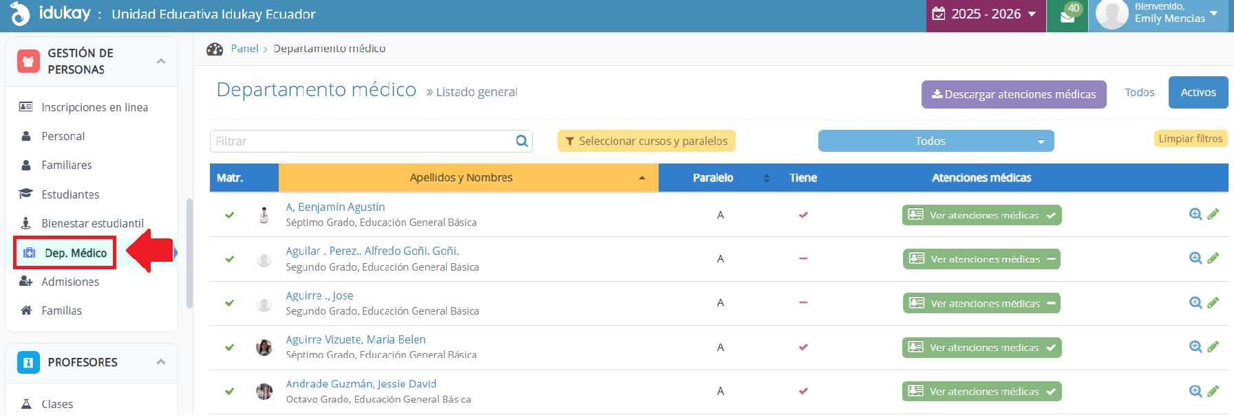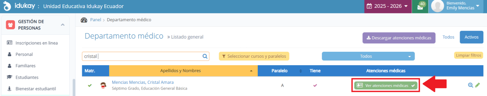Ingresamos al botón "Ver atenciones médicas" de color verde