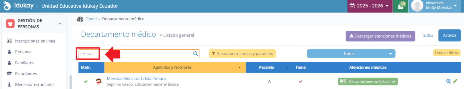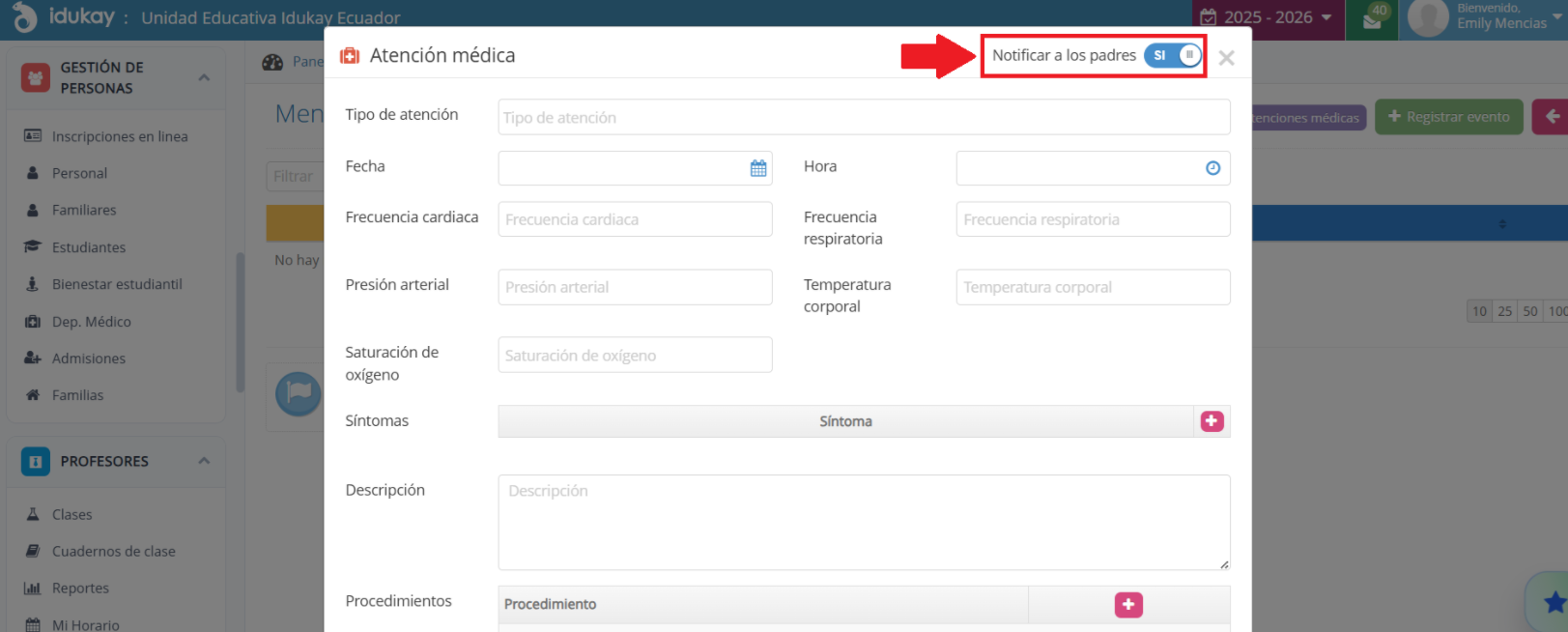 Registramos todos los datos del estudiante, siendo tipo de atención, fecha, hora y observaciones datos obligatorios para el resgitro de una atención. (Todos las tenciones médicas son nnotificadas por medio de correo electrónico al padre de familia)