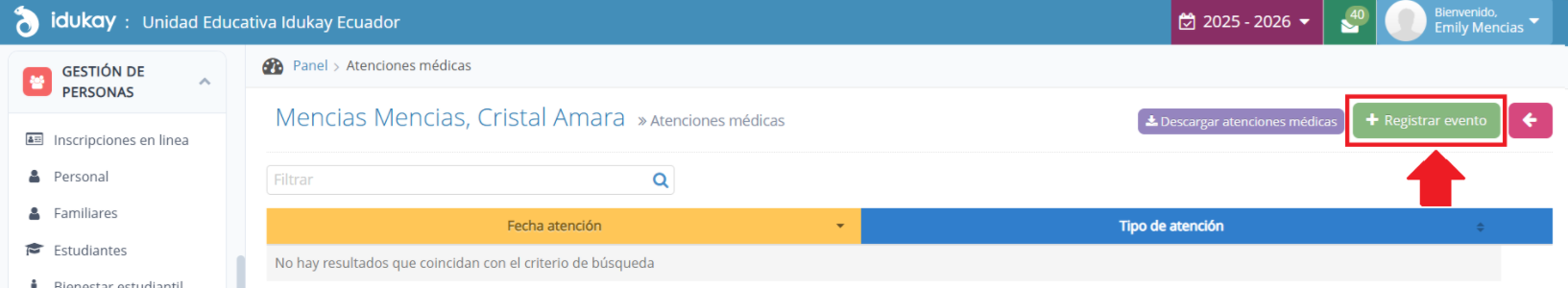 Presionamos en la parte superior derecha el botón "Registrar evento" de color verde