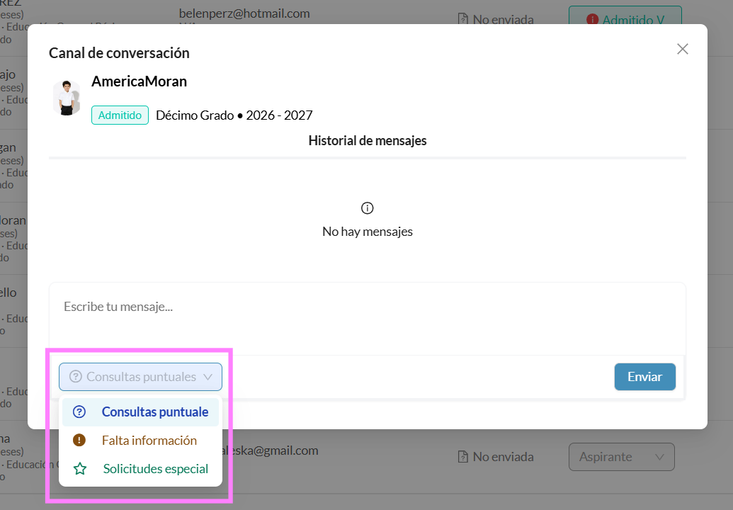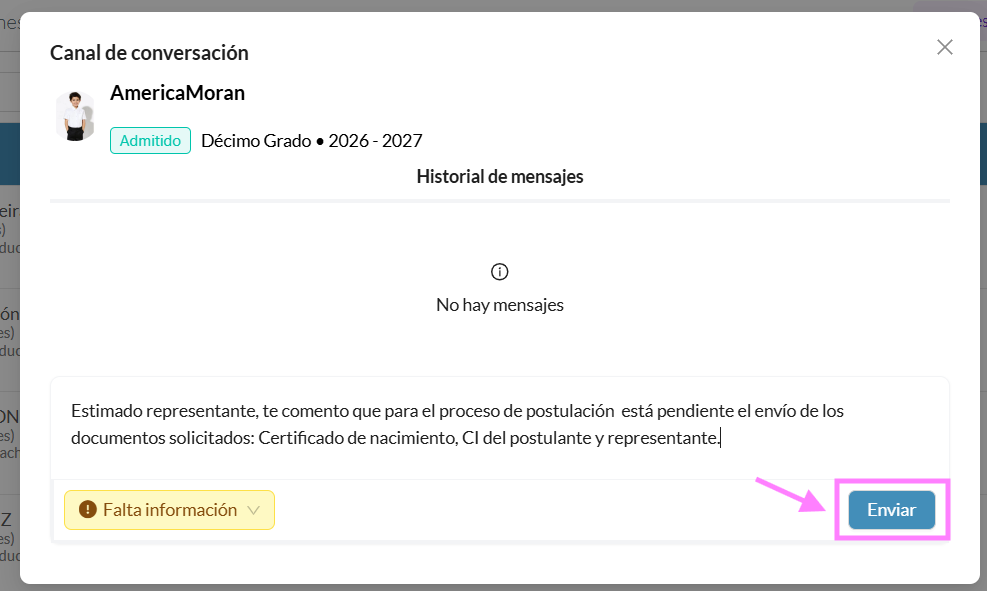 Te detallamos el paso a paso para enviar mensajes a los representantes de los futuros postulantes dentro de Paktay.