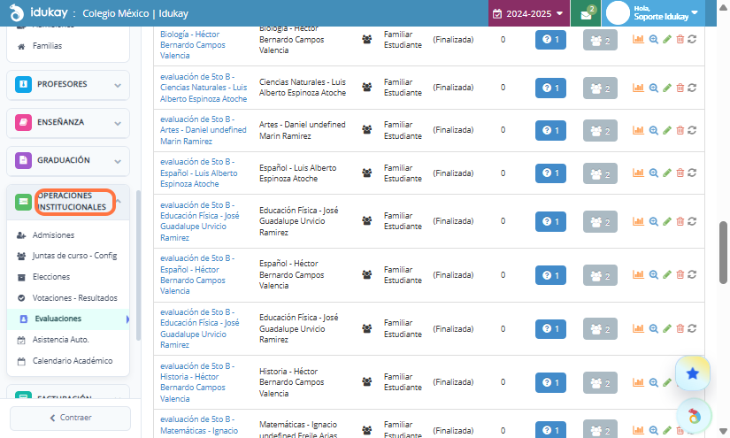 Teniendo el permiso asignado, dirigete al menú operaciones institucionales y da clic en Juntas de curso - Config