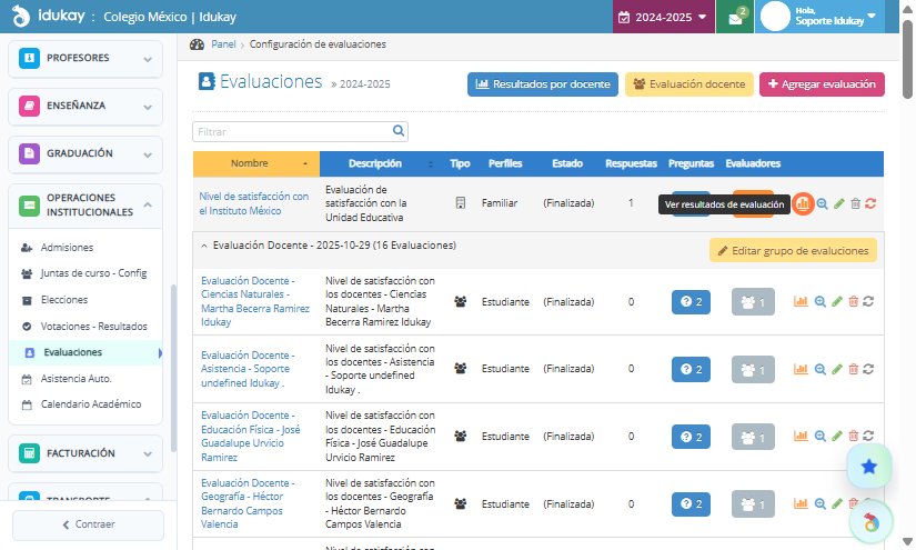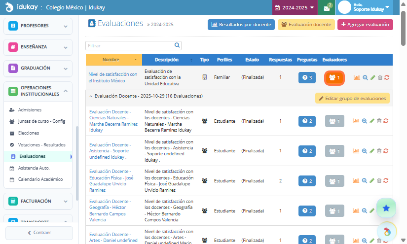 - Otras opciones son ver resultados y reiniciar las evaluaciones.