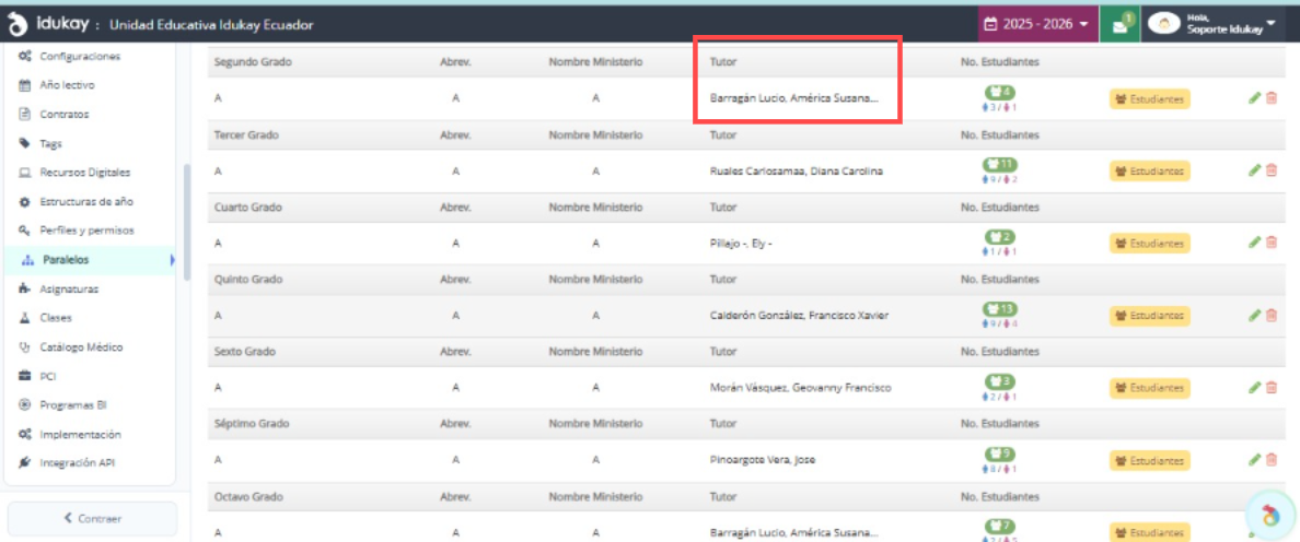 Debes estar asignado desde el apartado de Paralelo, Grupo o Sección como Tutor